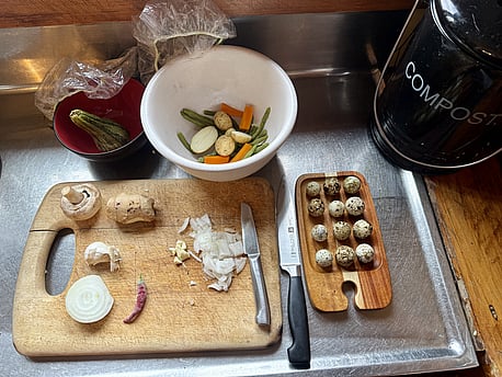 Once we’ve harvested, we cook, preserve, and make do with what we’ve got — and when the meal is done, the cycle continues. Scraps and leftovers either get composted, chopped down, or fed to the worms. The worms do their magic, and what they create goes right back into the soil to help the next round of growing. Full circle, every time.